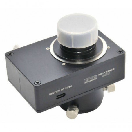 يعد SunObserver eADC V3 مصحح تشتت جوي كهربائي من الجيل الثالث يتميز بتقنية عدم إزاحة الصورة، وهو مصمم للتصوير الفلكي المتطلب والمراقبة البصرية عالية الدقة. في قلب eADC V3 يوجد نظام مكون من أربعة موشورات مرتبة في مجموعتين، مصنوعة من زجاج بصري عالي الجودة ومعالجة بطبقات مضادة للانعكاس واسعة النطاق. يكتشف مستشعر مدمج باستمرار اتجاه التلسكوب ويحسب تلقائيًا تصحيح تشتت الغلاف الجوي المطلوب.