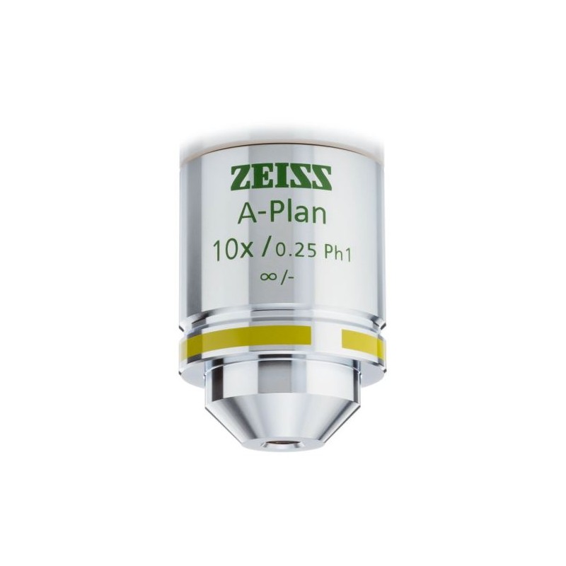Обективът ZEISS A-Plan 10x/0.25 Ph1 е план-ахроматичен обектив, предназначен за прецизни микроскопски приложения. Той предлага увеличение 10x с числова апертура 0.25 и поддържа фазов контраст Ph1, което подобрява видимостта на прозрачни образци.