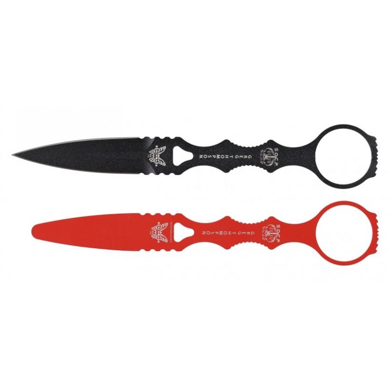 Комплектът SOCP Dagger Combo включва тактическия нож Benchmade 176BKSN SOCP Dagger, както и специална тренировъчна версия, предназначена за безопасна и реалистична практика. Тренировъчният модел възпроизвежда размера, теглото и цялостния дизайн на истинското острие, но без заточени ръбове и връх, което позволява ефективно обучение без бойни възможности. Benchmade 176BKSN SOCP Dagger е разработен с участието на създателя на програмата S.O.C.P., бойна система, използвана от специализирани части на U.S. Army. Това е дискретен, скелетизиран тактически нож с фиксирано острие, предназначен за отбранителни и тактически приложения.