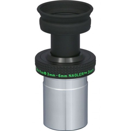 TeleVue Nagler Zoom ৩–৬ মিমি আইপিস একটি কমপ্যাক্ট, উচ্চ-দক্ষতার জুম আইপিস যা নির্ভুল উচ্চ-বড়ীকরণ পর্যবেক্ষণের জন্য ডিজাইন করা হয়েছে। এটি বিশেষভাবে গ্রহ, চাঁদ এবং ডাবল-তারা পর্যবেক্ষণের জন্য উপযুক্ত, যেখানে সঠিক বড়ীকরণ সমন্বয় অপরিহার্য। জুম মেকানিজমে প্রতি ১ মিমি ইঙ্ক্রিমেন্টে নির্ভুল ক্লিক স্টপ রয়েছে, যা ৩ মিমি থেকে ৬ মিমি পর্যন্ত দ্রুত ও পুনরাবৃত্তিযোগ্য ফোকাল দৈর্ঘ্য পরিবর্তন করতে দেয়।