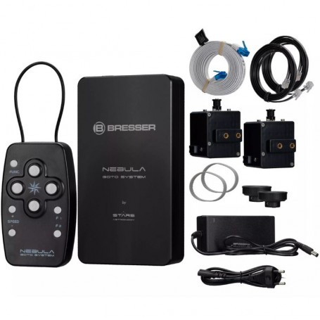 Bresser Nebula GoTo Kit EXOS-2 je vysoce schopný systém navržený pro vylepšení vašeho montážního systému EXOS-2 s přesným motorickým ovládáním a pokročilou funkcionalitou GoTo. Tento kit obsahuje krokové motory, systém pohonu s červíkovým kolem a vícejazyčné ovládání GoTo, což ho činí ideálním jak pro začátečníky, tak pro zkušené astronomy. Díky integrované WiFi a dálkovému ovládání poskytuje pohodlí a flexibilitu při vyhledávání a sledování nebeských objektů.