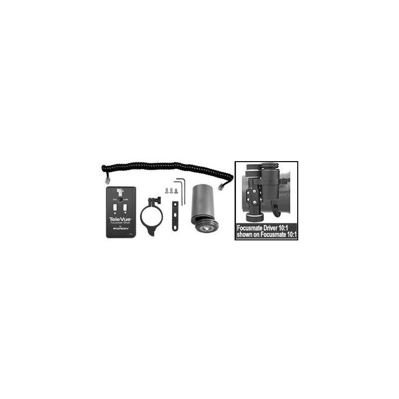 Ο TeleVue Focusmate Driver είναι ένας ηλεκτρικός κινητήρας με ρυθμιζόμενη ταχύτητα, σχεδιασμένος για να βελτιώνει την ακρίβεια της εστίασης σε συμβατά τηλεσκόπια TeleVue, συμπεριλαμβανομένου του NP127is. Εγκαθίσταται εύκολα στη μονάδα Focusmate και διαθέτει έναν μοναδικό μηχανισμό ταχείας αποσύνδεσης, που σας επιτρέπει να εναλλάσσετε μεταξύ μηχανοκίνητης και χειροκίνητης εστίασης χωρίς τη χρήση εργαλείων. Αυτή η ευελιξία το καθιστά ιδανικό τόσο για απεικόνιση όσο και για οπτική παρατήρηση. Το σύστημα περιλαμβάνει ένα χειριστήριο με μπαταρία, με κουμπιά εμπρός και πίσω και έναν περιστροφικό διακόπτη μεταβλητής ταχύτητας.