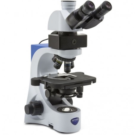 Microscopio Optika B-383LD, trinocular, FL-LED, filtro azul, N-PLAN, IOS, 40x-1000x (67441)