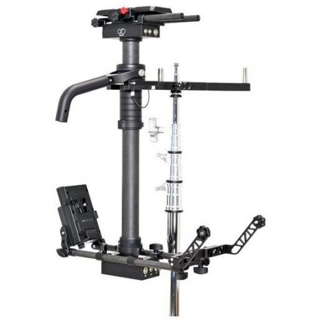 یک صفحه باتری V-mount که در پایین نصب میشود، سیستم را به صورت داخلی از طریق ستون مرکزی تغذیه میکند و برق را به بخش بالایی میفرستد که سه خروجی با ولتاژهای مختلف برای دوربینها و لوازم جانبی مختلف ارائه میدهد. اتصالات پشتیبانیشده شامل خروجیهای LEMO دو پین و چهار پین ۱۴.۸ ولت DC، همچنین ورودی/خروجی ویدئویی tally و BNC برای ارسال سیگنال به مانیتور شما است.