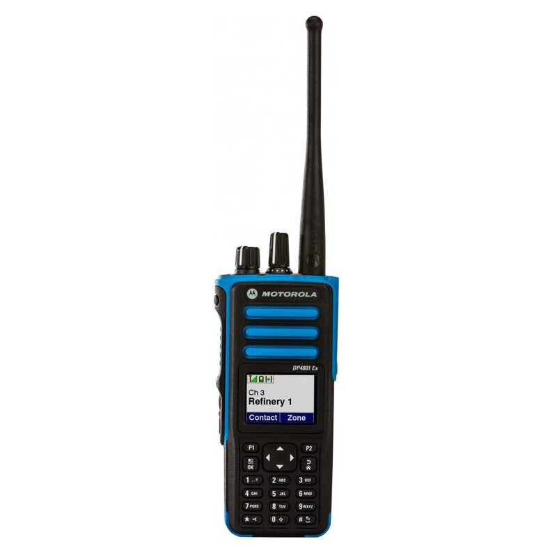 رادیو پرتابل دیجیتال Motorola Solutions MOTOTRBO DP4801 EX عملکرد پیشرفته بیسیم دوطرفه را با فناوری دیجیتال مدرن ترکیب میکند. این دستگاه ارتباط صوتی و دادهای را یکپارچه میسازد، ظرفیت سیستم را افزایش میدهد و با کاربری آسان، تیمها را به طور مؤثر متصل نگه میدارد. بدنه آبی متمایز آن شناسایی تجهیزات تأیید شده ATEX را در محیطهای پرخطر آسان میکند. DP4801 EX که برای استفاده در مناطق خطرناک طراحی شده، عملکرد قابل اعتمادی را در محیطهای پر سر و صدا، شیفتهای طولانی، شرایط آب و هوایی سخت و محیطهایی که در معرض گرد و غبار قابل اشتعال، مواد شیمیایی منفجره، نشت گاز یا هیدروکربنهای قابل اشتعال هستند، ارائه میدهد.