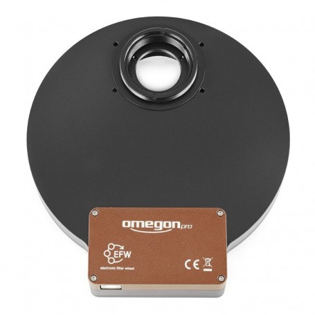 Paranna astrofotografia-asetustasi Omegon Pro Electronic Filter Wheel (EFW) -suodatinpyörällä. Tämä moottoroitu suodatinpyörä on suunniteltu sekä harrastajille että kokeneille tähtitieteilijöille, ja se yksinkertaistaa työnkulkuasi sekä tekee suodattimien vaihtamisesta nopeaa ja tarkkaa.