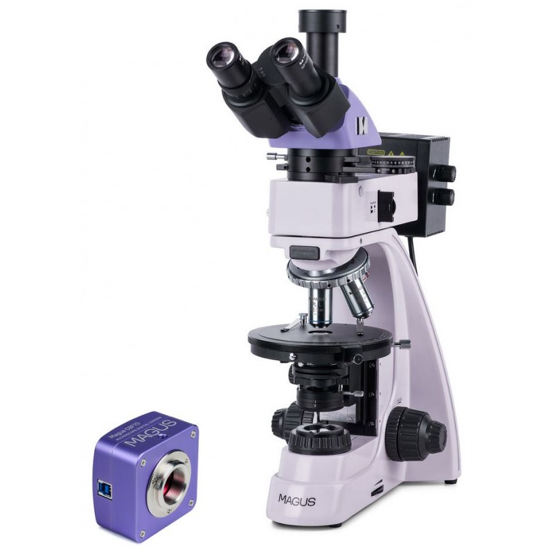 MAGUS Pol 850 -polarisaatiomikroskooppi on suunniteltu työskentelyyn sekä läpi- että heijastetussa valossa. Se tukee polarisaatio- ja kirkasvalohavainnointimenetelmiä ja on tarkoitettu anisotrooppisten näytteiden tutkimiseen biologiassa, geologiassa ja polymeeritutkimuksessa sekä läpinäkymättömien, jopa 15 mm paksujen kiillotettujen näytteiden tutkimiseen, joissa on yksi kiillotettu pinta. Se on käytännöllinen työkalu lääketieteen, rikostieteen, mineralogian, kristallografian ja petrografian asiantuntijoille. MAGUS CBF70 on ammattimainen tieteellinen kamera, joka on suunniteltu mikroskooppikäyttöön 4×, 10×, 20× ja 40× objektiivien kanssa.