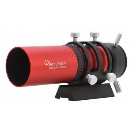 Le Guidescope UltraGuide MKII 32 mm est une solution de guidage compacte et légère conçue pour un suivi précis en astrophotographie. Avec son diamètre d'objectif de 32 mm et sa distance focale de 120 mm, il offre d'excellentes performances pour guider des télescopes plus petits ou des configurations avec une capacité de charge utile limitée. Ses multiples revêtements optiques garantissent des images claires et nettes, tandis que la bague de serrage et le rail à prisme inclus facilitent son intégration dans votre système.