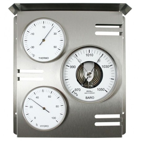 La station météorologique extérieure Fischer est un instrument de haute qualité fabriqué en Allemagne, conçu pour une surveillance précise des conditions environnementales extérieures. Elle est équipée d'un baromètre, d'un hygromètre et d'un thermomètre, vous permettant de mesurer la pression atmosphérique, l'humidité et la température avec précision. Sa construction en acier inoxydable durable assure des performances fiables dans diverses conditions météorologiques tout en conservant une apparence élégante et moderne.