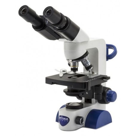 מיקרוסקופ Optika B-66, בינוקולרי, הגדלה 40-400x, תאורת LED, סוללה, שולחן צלב (62398)