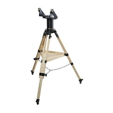 משטחי המיסב הרחבים ורגלי העץ העבות מספקים קשיחות מצוינת, מה שהופך את החצובה למתאימה לתצפיות בהגדלות גבוהות. הארכות הרגליים מעלות את ציר הגובה לכ-1.5 מטר, וסולמות מדורגים על ההארכות מאפשרים כיוון גובה חוזר ומדויק. מגש אביזרים מעץ מחבר בין הרגליים לתוספת יציבות, בעוד שהחלק המובנה המדמה עמוד משפר את הנוחות בעת תצפית על עצמים בגבהים גבוהים. פלס עין משולב בבסיס החצובה להתקנה מדויקת, ודוקרני מתכת עם קצוות גומי מבטיחים עמידה בטוחה על מגוון משטחים.
