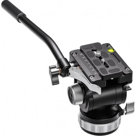 स्मूथ और सटीक मूवमेंट्स के लिए डिज़ाइन किया गया एक वास्तविक फ्लुइड वीडियो टिल्ट हेड। समायोज्य फ्लुइड डैम्पिंग सुनिश्चित करता है कि पैनिंग स्पष्ट और निर्बाध हो, जिससे यह ट्राइपॉड हेड मांगलिक प्रकृति के फिल्म निर्माताओं और अन्य उन्नत उपयोगकर्ताओं के लिए एक पेशेवर विकल्प बनता है। हेड में क्षैतिज मूवमेंट के लिए 360° रोटेटिंग पैनोरमा प्लेट और ऊर्ध्वाधर झुकाव के लिए 90° रोटेटिंग एक्सिस है। इसे किसी भी ट्राइपॉड पर 3/8-इंच ट्राइपॉड स्क्रू के साथ माउंट किया जा सकता है और यह विशेष रूप से प्रभावी होता है जब इसे एक ट्राइपॉड के साथ जोड़ा जाता है जिसमें एक लेवलिंग बेस (हाफ शेल) होता है।