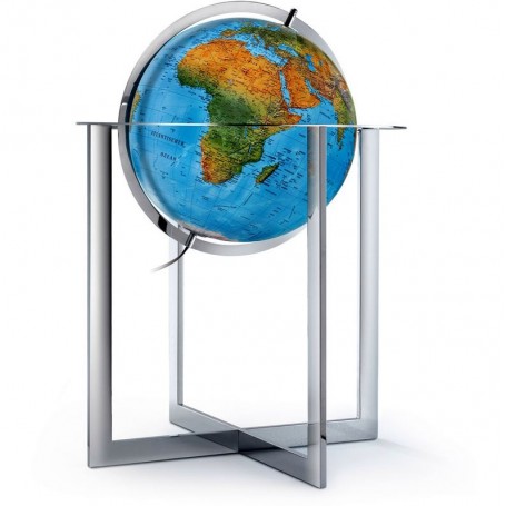 Podni globus Rathgloben DFN 50 80 je osvijetljeni podni globus dizajniran da bude istaknuti element u svakom domu ili uredu. S velikim promjerom od 50 cm i visinom od 100 cm, ovaj globus pruža detaljnu fizičku kartu s indeksom vegetacije, čineći ga i informativnim i dekorativnim. Globus se rotira i okreće za jednostavno gledanje iz bilo kojeg kuta te je postavljen na prepoznatljivu kromiranu čeličnu bazu koja dodaje moderan i sofisticiran dodir.