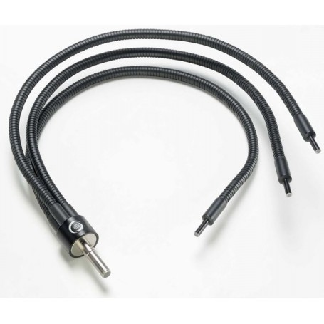A Schott Gooseneck 3-ágú PURAVIS száloptikás fényvezető sokoldalú és precíz megvilágítást biztosít mikroszkópos és ellenőrzési alkalmazásokban. Három rugalmas karral rendelkezik, amelyek mindegyike 4,5 mm átmérőjű és 600 mm hosszú, így lehetővé teszi a célzott megvilágítást több szögből. A félig merev, fekete lakkozott csövek biztosítják, hogy a karok a beállítás után megtartsák helyzetüket, stabil és megbízható megvilágítást nyújtva.