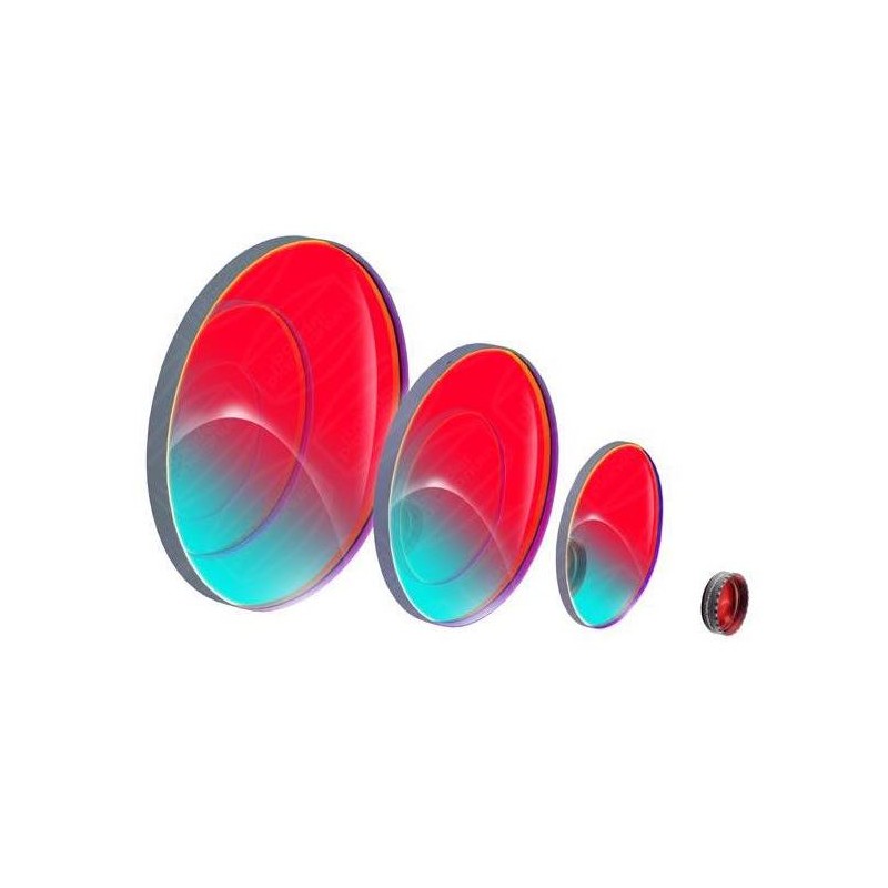A plano-parallel, kör alakú optikai lemezek mindkét felülete lambda/10 pontosságú precíziós polírozással kiváló optikai minőséget biztosítanak. A fejlett, több rétegű dielektromos interferencia rendszeren alapuló infravörös tükröződésgátló bevonat megakadályozza a túlzott hő bejutását a távcső optikai tubusába. A plano-parallel D-ERF (Energiaelnyelő Szűrő) hatékonyan blokkolja az infravörös sugárzást, még hosszan tartó megfigyelések során is.