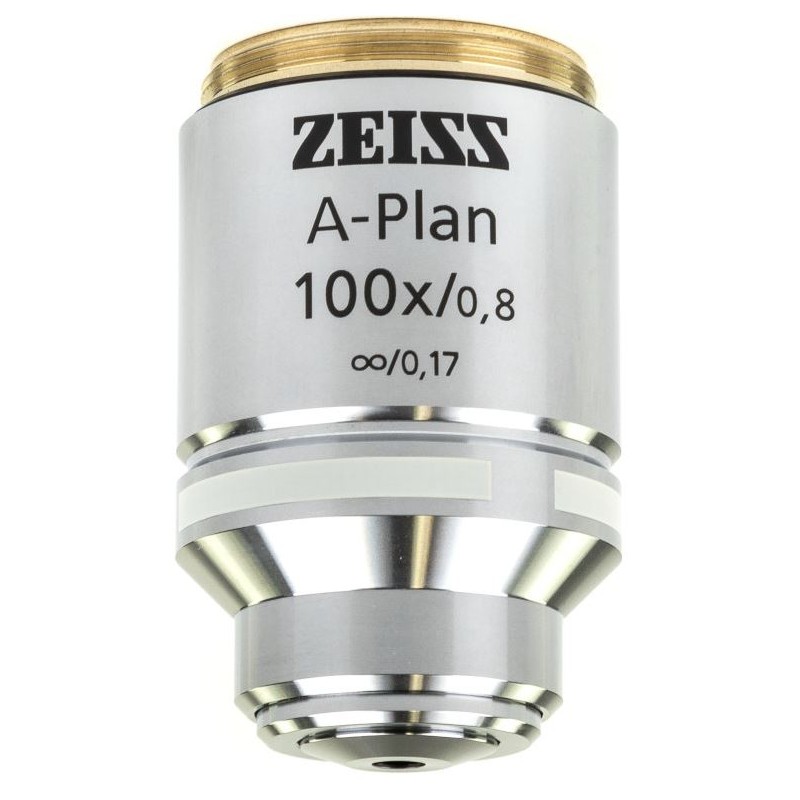 A ZEISS A-Plan 100x/0.8 objektív egy precíziós optikai elem, amelyet részletes mikroszkópos megfigyeléshez terveztek. 100-szoros nagyítást kínál 0,80-as numerikus apertúrával, éles és pontos képvisszaadást biztosítva. Ez a végtelenre korrigált objektív sík (plan) kialakítású a sík képmező érdekében, és rugós első elemmel rendelkezik a fokozott védelem érdekében.