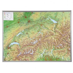 Peta relief 3D besar Georelief dari Dunia, dalam bingkai aluminium (dalam bahasa Jerman) (44661)