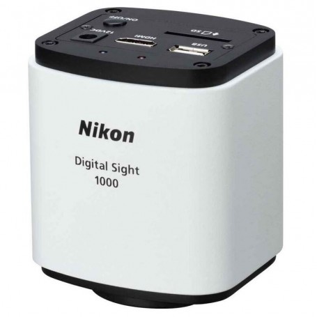 Nikon DS-1000 adalah kamera warna kompak yang dirancang untuk pencitraan definisi tinggi dalam aplikasi mikroskopi. Kamera ini dilengkapi dengan sensor CMOS 2 megapiksel dan mendukung pengambilan gambar diam dan video pada resolusi HD penuh. Kamera ini cocok digunakan di laboratorium, lingkungan pendidikan, dan tugas dokumentasi rutin. Kamera ini dapat dihubungkan langsung ke monitor melalui HDMI atau ke komputer melalui USB 2.0, memberikan opsi yang fleksibel untuk melihat gambar dan transfer data.