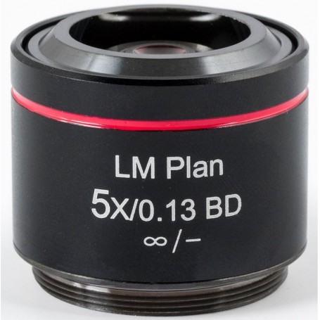 Motic Objective LM BD PL, CCIS, LM plan, achro, BD 5x/0.13, w.d. 17.3mm er sérstaklega hannað fyrir málmvinnsluforrit með AE2000 MET seríunni. Þessi linsa býður upp á 5x stækkun og tölugildi ljósops 0.13, sem gerir hana hentuga fyrir lága stækkunarskönnun og yfirlit yfir málm- og efnisýni.
