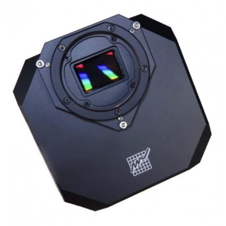 이 카메라는 모노크롬(흑백) 모델로, 컬러 카메라에 비해 감도와 해상도가 높습니다. 모노크롬 센서는 천체 사진에서 세부 사항과 희미한 물체를 포착하는 데 이상적이며, 달, 행성, 성운 및 은하를 촬영하는 데 인기가 있습니다. 그러나 컬러 이미지를 생성하려면 별도의 컬러 필터와 필터 휠을 사용해야 하며, 카메라가 직접 색상 정보를 캡처하지 않습니다. 이 설정은 이미지 획득 및 처리 시 더 많은 노력이 필요하지만, 우수한 이미지 품질과 유연성을 제공합니다.