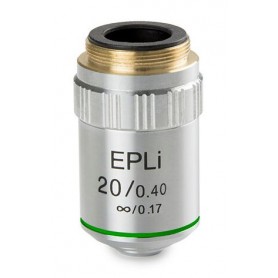 Euromex Objective AE.3144 er et høykvalitets mikroskopobjektiv designet for bruk med Oxion-serien av mikroskoper. Dette 4x/0.13 objektivet er en del av IOS (Infinity Optical System)-serien, og har planoptikk for et flatt synsfelt og semi-apokromatisk korreksjon for forbedret fargenøyaktighet og redusert kromatisk aberrasjon. Det er ideelt for applikasjoner som krever lav forstørrelse og høy optisk presisjon, slik som innledende observasjon av prøver eller avbildning av store prøveområder.