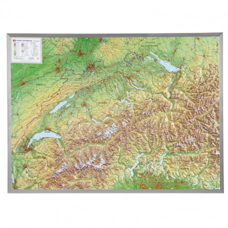 Georelief Duża mapa reliefowa 3D Szwajcarii w aluminiowej ramie (w języku niemieckim) (44622)