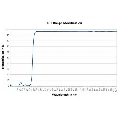 Astromodyfikacja Full Range: Aparat staje się czuły na światło ultrafioletowe, widzialne i podczerwone zaczynając od 300 nm. Ta wersja jest idealna dla maksymalnej elastyczności. Z dodatkowymi filtrami aparat może być używany do standardowej fotografii dziennej, czystej fotografii w podczerwieni lub zaawansowanej astrofotografii.