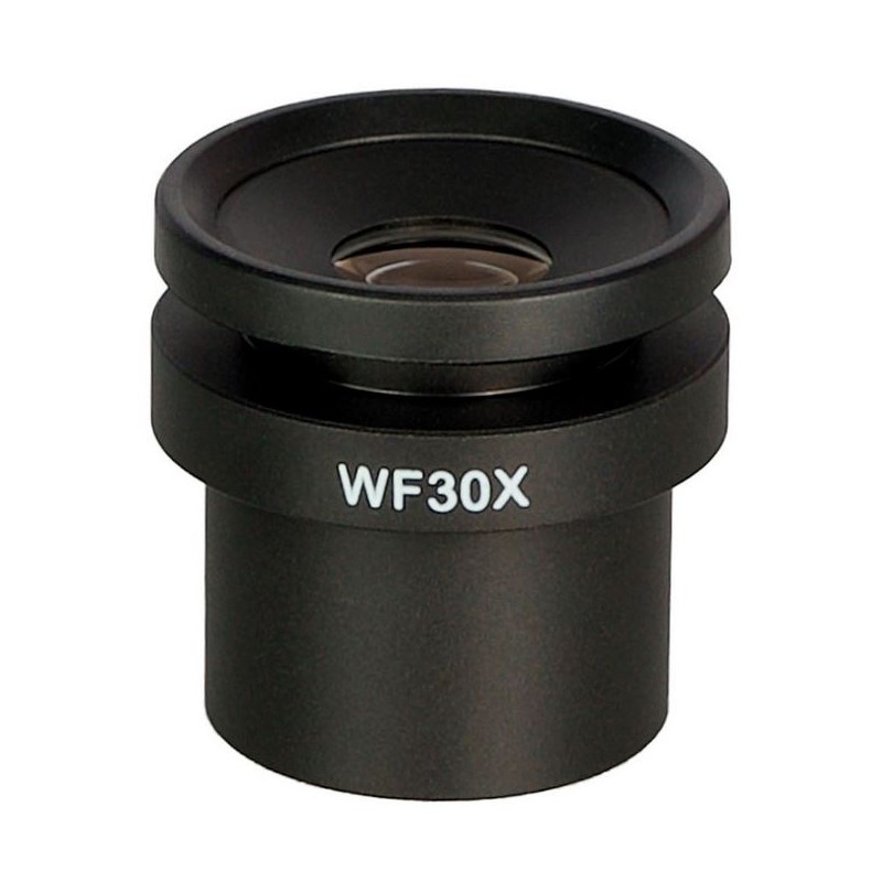 As oculares são utilizadas para ampliar a gama de ampliações de um microscópio. A ocular de 30× proporciona a ampliação útil adequada quando combinada com um objetivo de 2×/0,06, permitindo observar claramente os detalhes das amostras. Esta ocular possui ajuste de dióptrias, tornando-a uma escolha ideal para microscópios que não têm anel de ajuste de dióptrias no tubo da ocular. Permite que utilizadores com visão imperfeita consigam focar com maior facilidade.