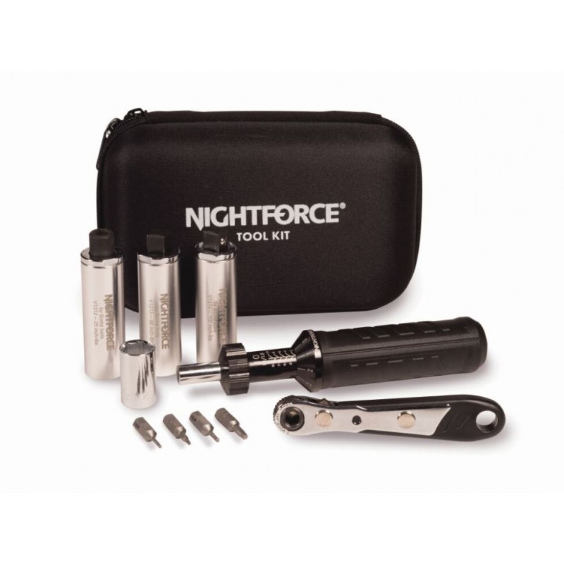 O kit inclui um chave de torque ajustável de 2–10 in-lb, especificamente destinada à manutenção dos mecanismos Nightforce ZeroStop, ZeroSet e ZeroHold, assim como dos parafusos dos discos das torretas. Limitadores de torque adicionais com valores de 25, 68 e 100 in-lb garantem a montagem segura dos anéis Nightforce e um retorno fiável ao zero.