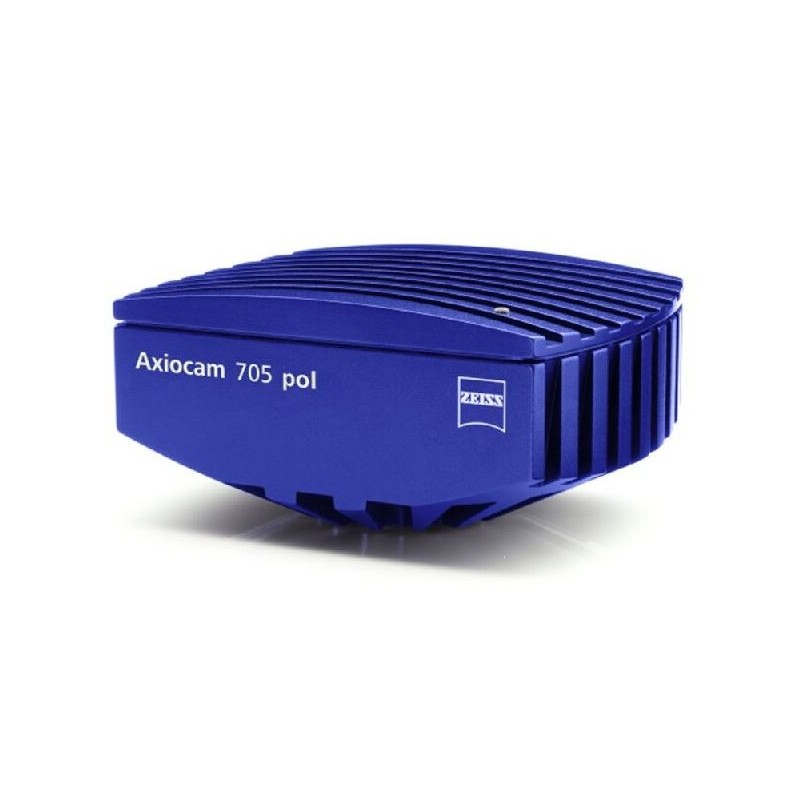 A Axiocam 705 pol é uma câmara científica de 5 megapíxeis concebida para imagem de polarização. Possui um sensor especializado com uma máscara de filtro de polarização integrada, permitindo captar parâmetros de polarização como ângulo e grau de polarização numa única imagem. Não é necessário nenhum analisador adicional no microscópio.