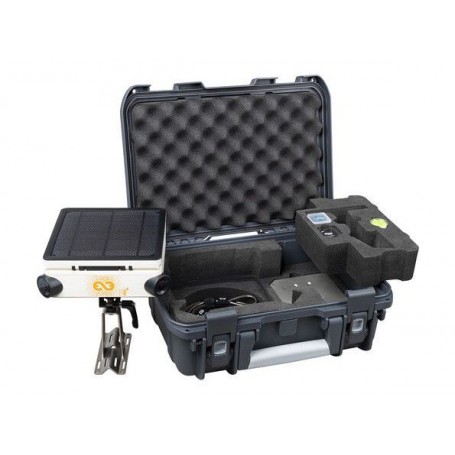 Possui um painel solar integrado e bateria de íons de lítio para operação contínua