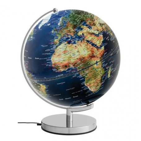 O Troika Globe Stellar Light Physical 30cm é um globo de mesa lindamente desenhado que combina iluminação LED atmosférica com um mapa físico. Apresenta uma estrutura e suporte de metal cromado, juntamente com um cabo preto, plugue Euro e interruptor para uso conveniente. O globo exibe todos os continentes, oceanos, países e cidades em inglês, tornando-o uma peça decorativa e educativa. Seu design iluminado traz uma atmosfera acolhedora e convidativa a qualquer ambiente.