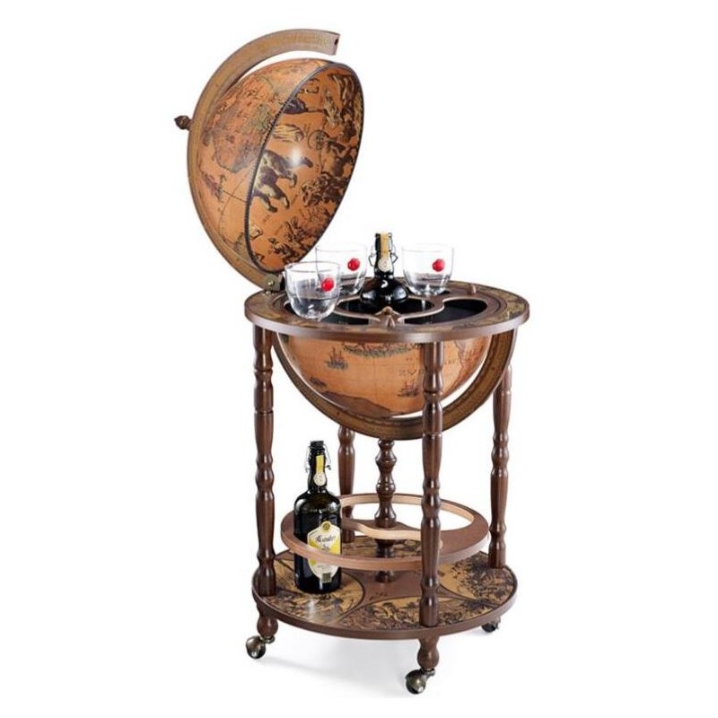 Богатая географическими привязками, отражающими знания своего времени, карта этого земного шара украшена замысловатой иконографией и мифологическими персонажами небесной сферы.