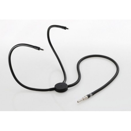 Schott 鹅颈导光器,2分支 Kombi PURAVIS,专为显微镜和检测应用中的精确和多功能照明而设计。该型号具有两个分支:一个半刚性鹅颈臂,长度为500毫米,另一个柔性光导臂,长度为800毫米,两者的直径均为4.5毫米。黑色漆面半刚性管道允许稳定定位,而柔性臂则提供更长的伸展和适应性。