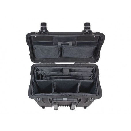 Peli™ 1440 配备坚固耐用的轮子和伸缩手柄,即使在崎岖地形也能轻松舒适地运输。此外,先进的压力平衡阀系统配有 GORE-TEX 密封件,可确保气压变化不会影响箱子内的物品。